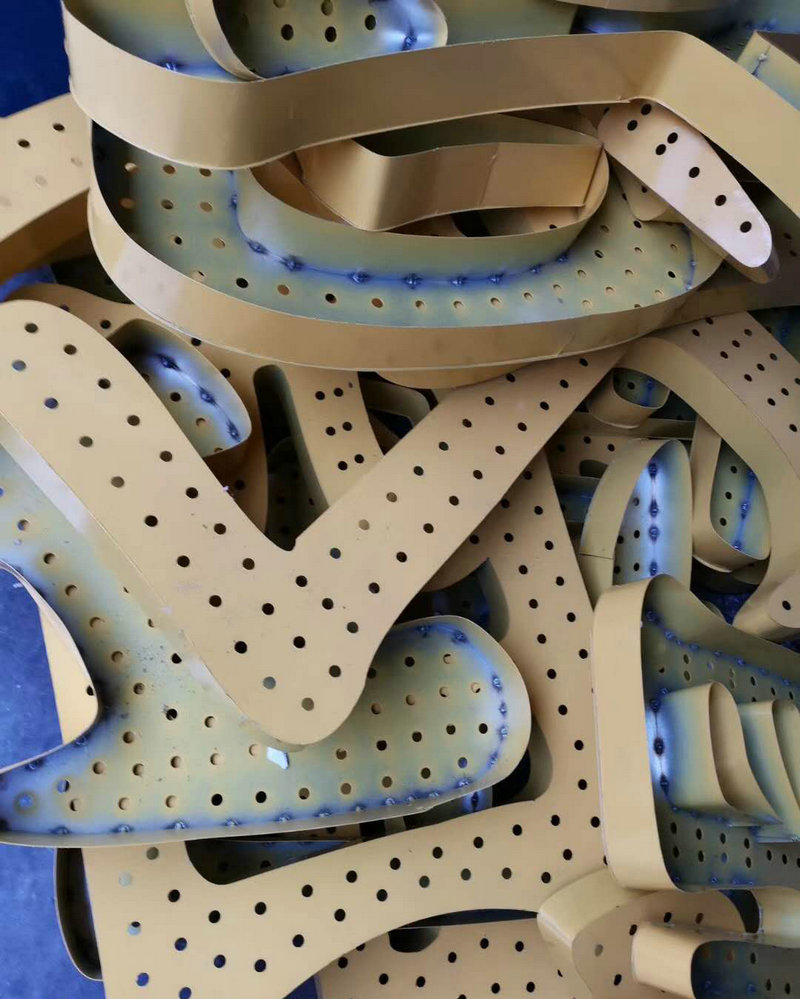 3、用折弯机将侧边根据字形周边围成字壳,也可人工拼装围成;